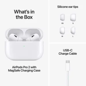 | What’s in the Box | AirPods Pro, MagSafe Charging Case (USB-C) with speaker and lanyard loop, Silicone ear tips (four sizes: XS, S, M, L), Lightning to USB-C Cable, Documentation |