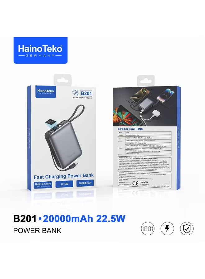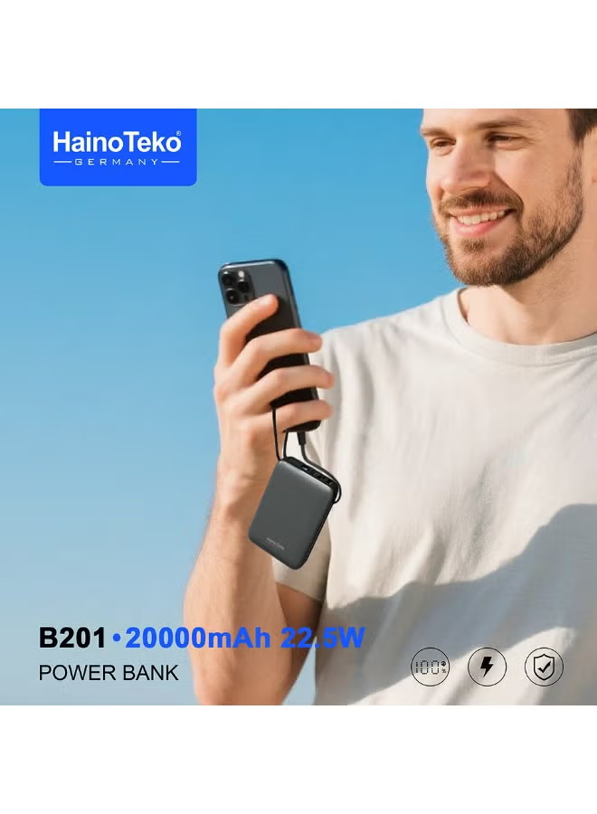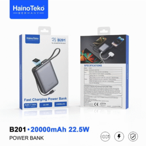 Stay powered up anywhere with the Haino Teko B201 Fast Charging Power Bank, engineered for speed, safety, and convenience. Featuring a massive 20000mAh capacity and 22.5W fast charging output, it quickly powers your smartphone, tablet, or other gadgets multiple times.