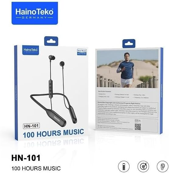 - Wireless Connectivity: Haino Teko HN101 Bluetooth neckband earphones feature wireless connectivity for seamless audio streaming.