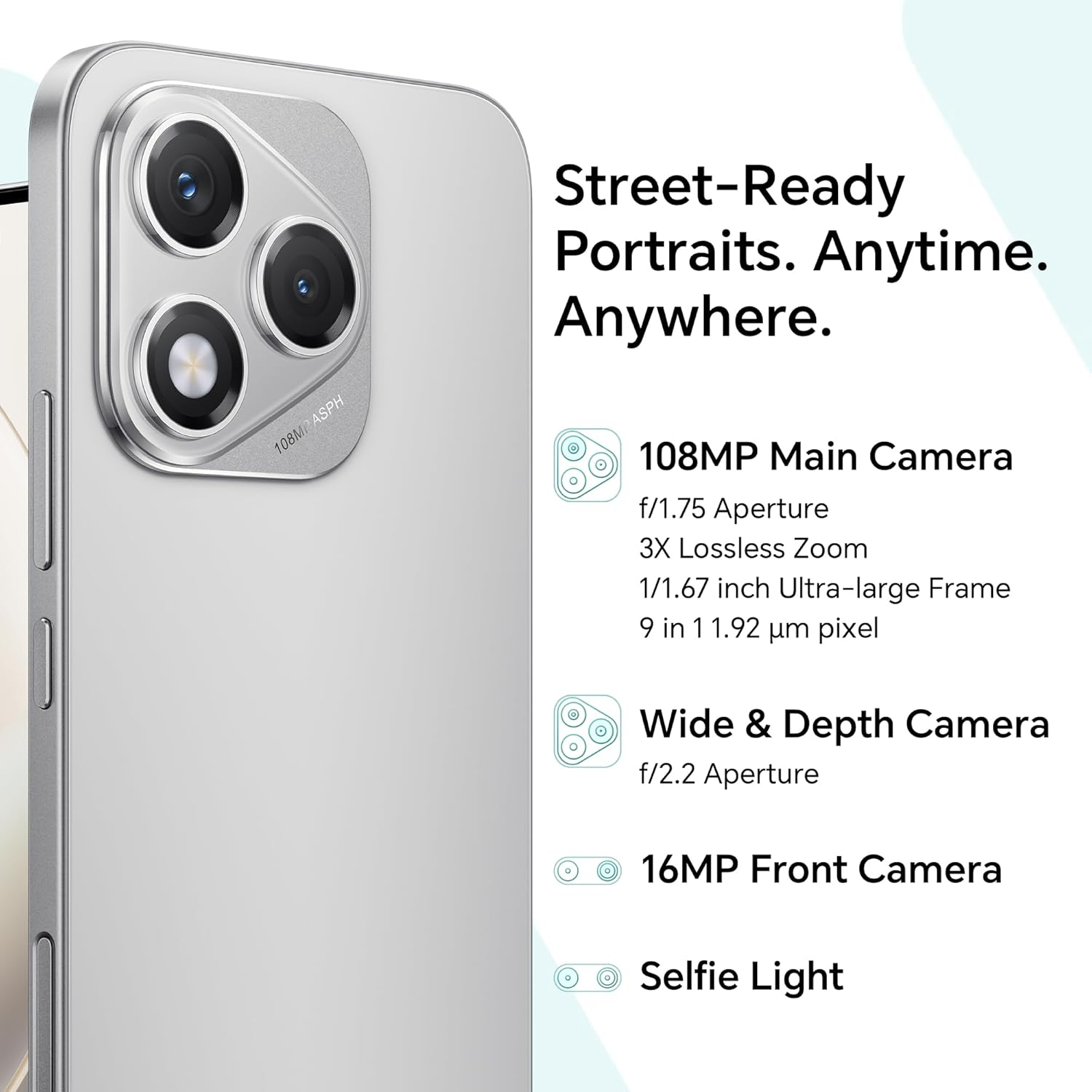 • [Dedicated AI Camera Button — First in This Price Segment] – Snap photos instantly with the exclusive AI Camera Button — a physical shortcut for capturing moments on the fly. A premium feature inspired by flagship devices, now available only in this price range with HONOR 400 Lite.
