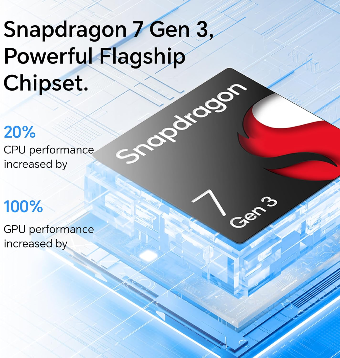 - [SNAPDRAGON 7 GEN 3 PERFORMANCE] – Equipped with an advanced 4nm chipset and 8GB RAM for smooth multitasking, app usage, and gaming.